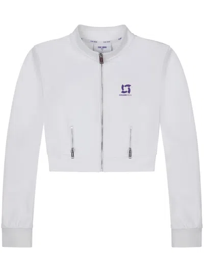 Omens White Stand-collar Paint-splatter Denim Jacket Xs In Neutral