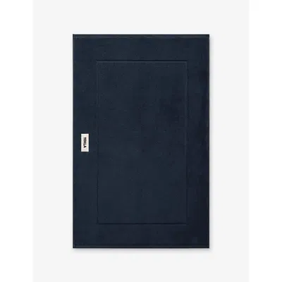 Black Terry Bath Mat In Blue