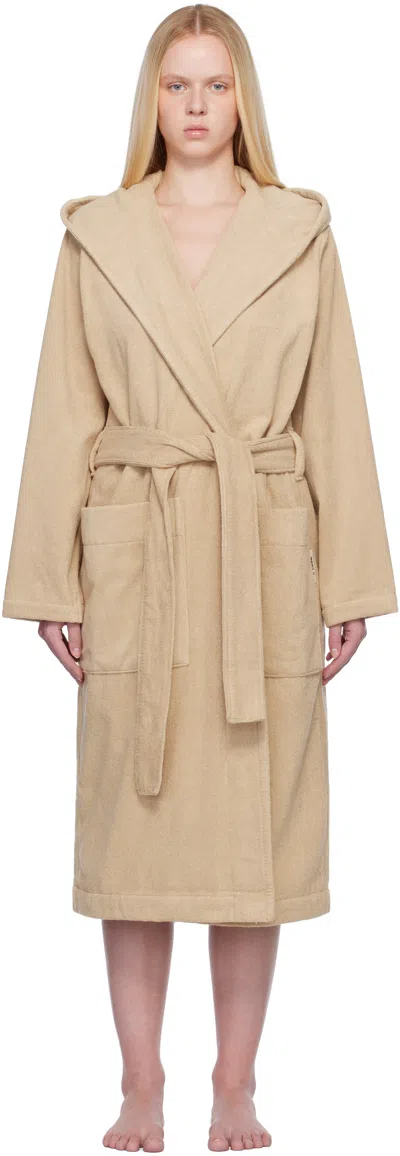 Beige Terry Hooded Bathrobe In Brown