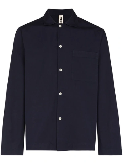 Camp-collar Organic Cotton-poplin Pyjama Shirt In Blue