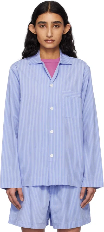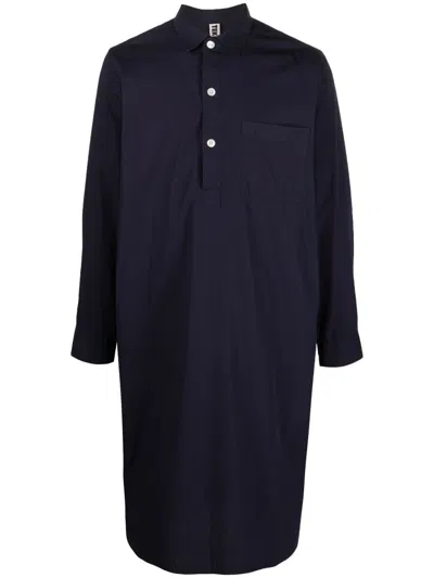 Blue Poplin Long-sleeved Pyjama Shirt In Shirt Blue