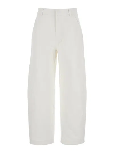 Cosmo White Trousers With Wide-leg And Two Welt Pockets In Cotton Woman