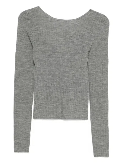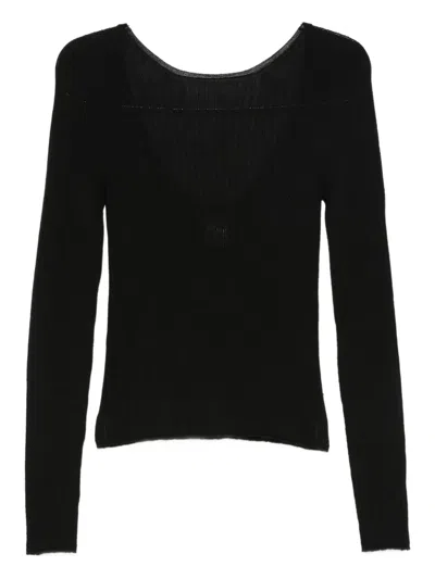 Elegant Long-sleeved Sweater With Rhinestone Application In Brown