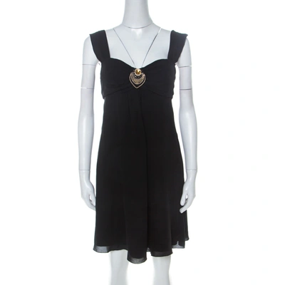 Pre-owned Black Silk Embellished Detail Gathered Bodice Babydoll Dress M