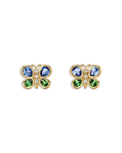 Women's Fj Butterfly 18k Yellow Gold, 0.07 Tcw Diamond, Blue Sapphire & Blue Moonstone Stud Earrings