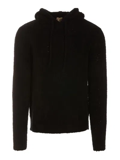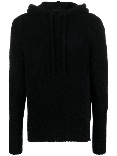 Black Pullover Hoodie With Textured Hood