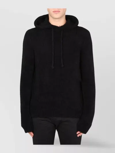 Drawstring Hooded Sweater With Ribbed Details In Black