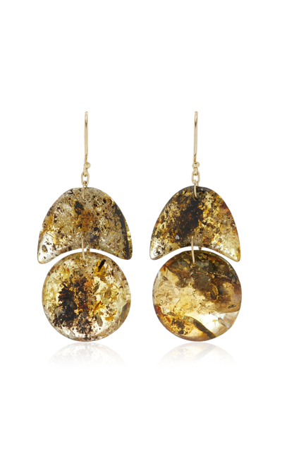 Small O'keefe 18k Yellow Gold Amber Earrings In Brown