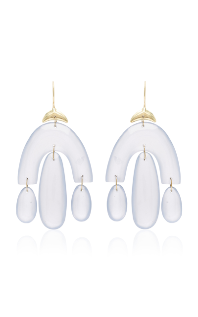 Mini 18k Yellow Gold Chalcedony Earrings In Blue