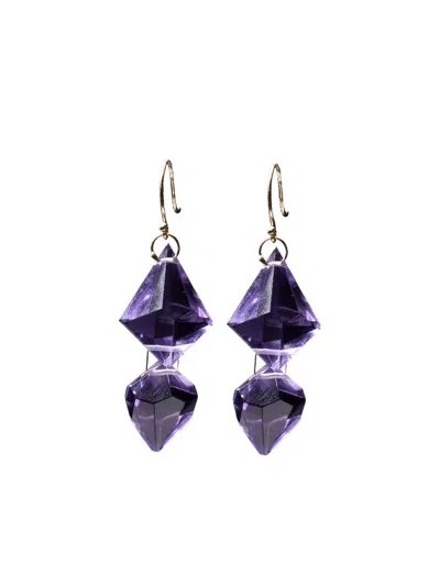 18k Yellow Gold Double-faceted Amethyst Earrings In Purple