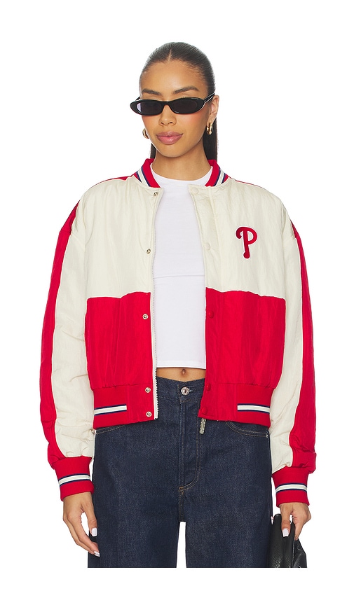 49rs Colorblock Bomber Jacket 49ers Sugar Swizzle/red In Metallic
