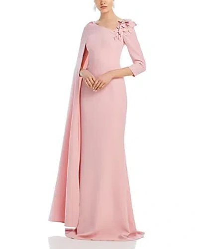 By Rickie Freeman Floral Applique Asymmetric Cape Gown In Rose Pink