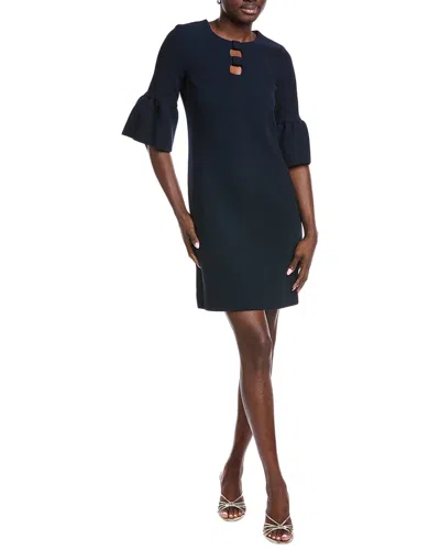 By Rickie Freeman Keyhole Flounce Wool Sheath Dress In Blue