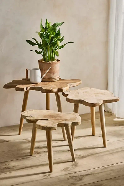 Teak Root Slice Nesting Tables, Set Of 3 In Brown