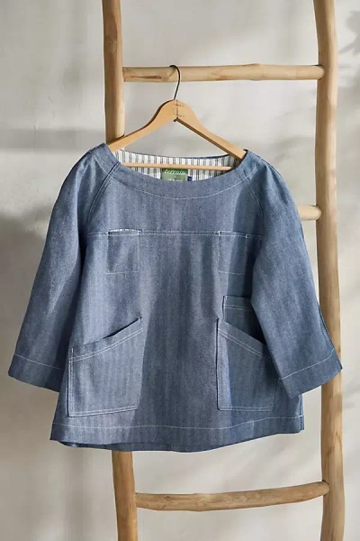 X Of Dress Gardening Smock, Denim Herringbone In Blue