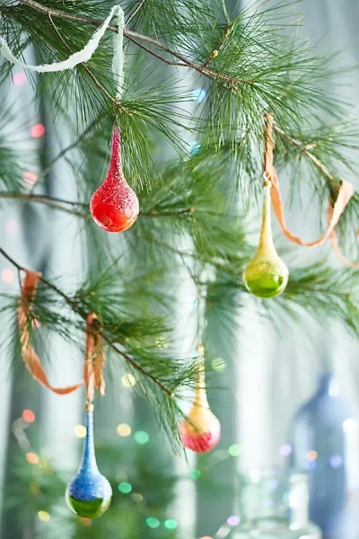 Glitter Droplet Glass Ornament In Multi