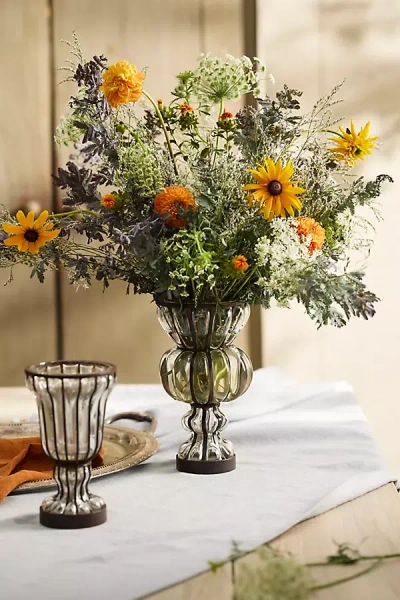 Striped Iron + Glass Vase In Multi