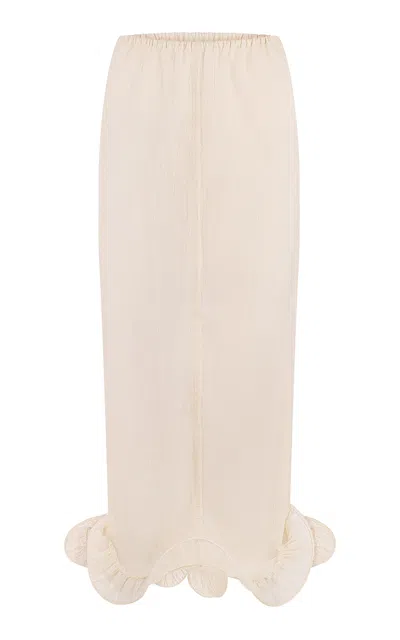 Kati Flounced Cotton-blend Midi Skirt In Off-white