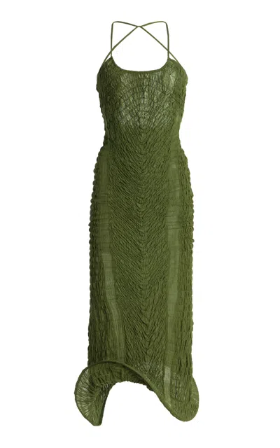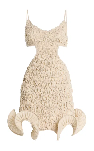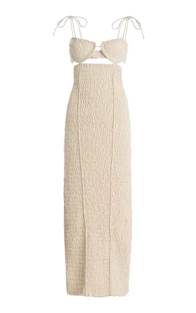 Bella Shirred Cotton-blend Midi Dress In Neutral