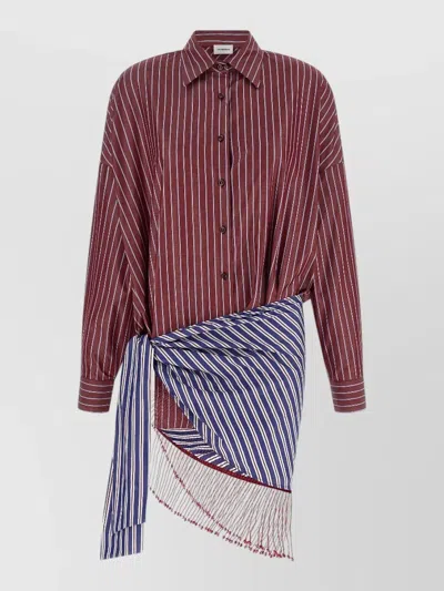 Jolene Striped Collared Long Sleeve Fringe Top In Multi