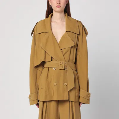 Double-breasted Overcoat With Belted Epaulettes In Yellow