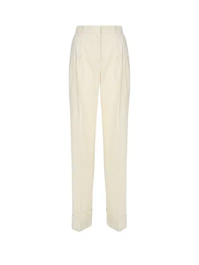 Gabardine Trousers With Back Pockets And Pleated Design In White