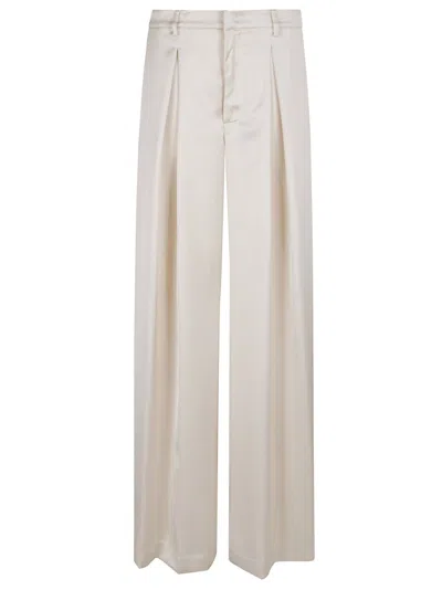 Front Pleats Wide Leg Trousers In Neutral
