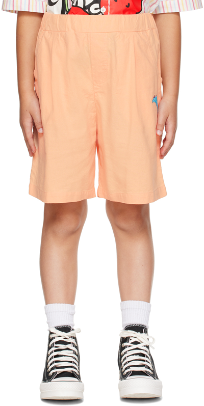 Kids Orange Dolphin Embroidery Shorts In Peach