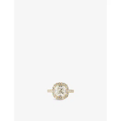 Womens Yellow Gold Halo 18ct Yellow-gold And 3.62ct Cushion-cut .lab-grown Diamond Ring