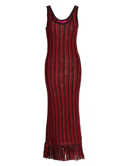 Striped Fringe Sleeveless Maxi Dress In Red
