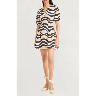 Squiggle Print Square Neck Linen Blend Minidress In Neutral