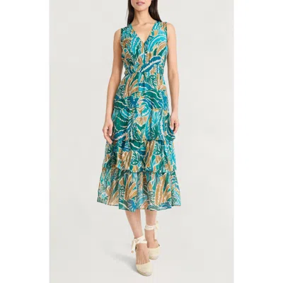 Floral Sleeveless Cotton Smocked Back Midi Dress In Multi