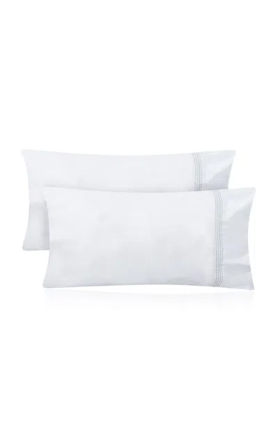 Essential Set-of-two Embroidered King Pillowcases In Blue