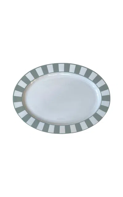 Essentials Navy-white Serving Plate Oval 17" In Blue