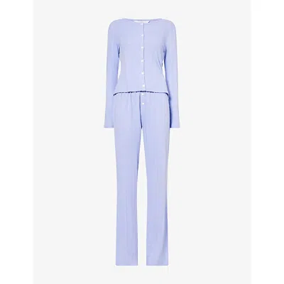 Womens Stretch Long-sleeve Modal-jersey Pyjama Set In Blue