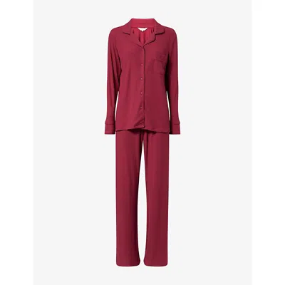 Womens Stretch Ribbed Long-sleeve Modal-jersey Pyjama Set In Red