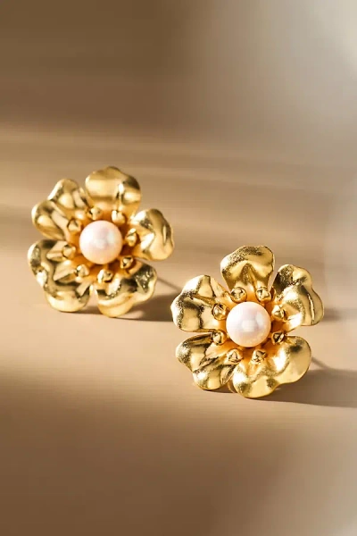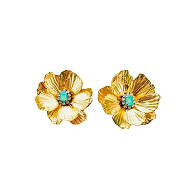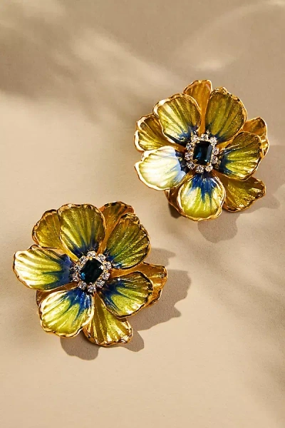 Small Handpainted Jewel Box Flower Earrings In Yellow