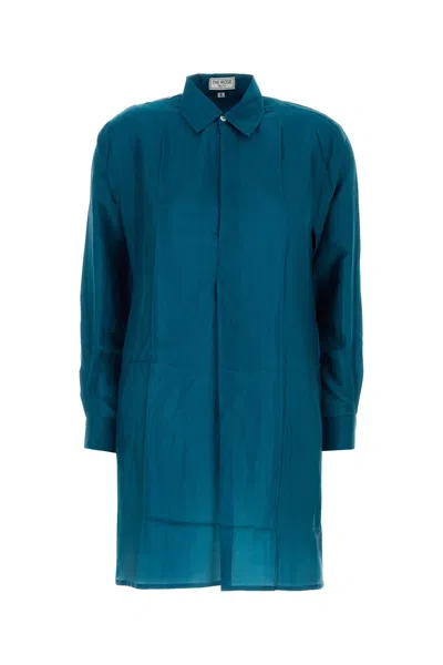 Teal Green Silk Reynal Shirt Dress In Blue