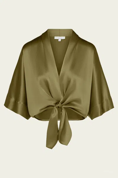 Dolman Tie Front Blouse In Moss In Green