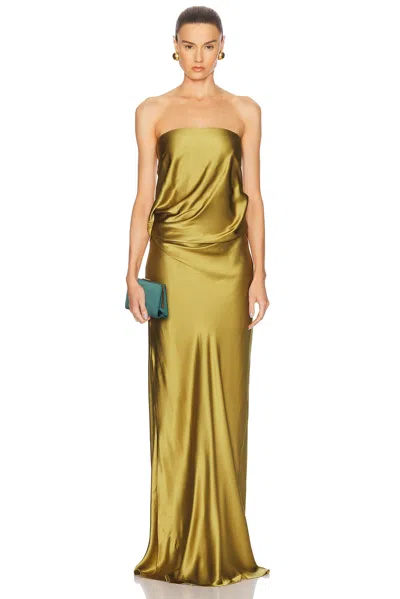 Draped Strapless Gown In Gold
