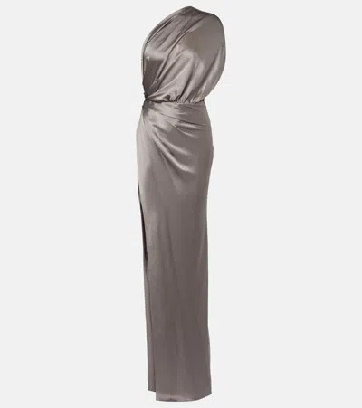 Sheer Slit One Shoulder Gown In Silver