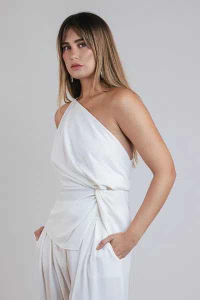 Twist Knot Top In Ivory Crepe In White