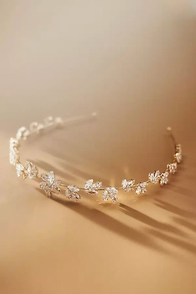 Crystal Floral Headband In Gold