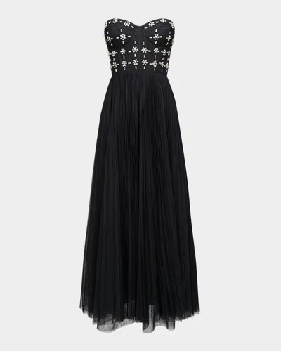 Alesia Strapless Embellished Corset Midi Dress In Black