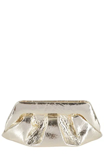 Metallic Pleated Clutch Bag Shoulder Strap In Gold