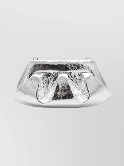 Themoir Laminated Leather Tia Shoulder Bag With Woven Pattern In Silver