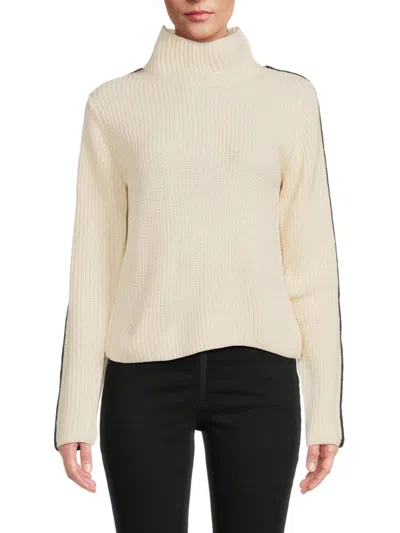 Women's Contrast Piped Turtleneck Sweater In Black