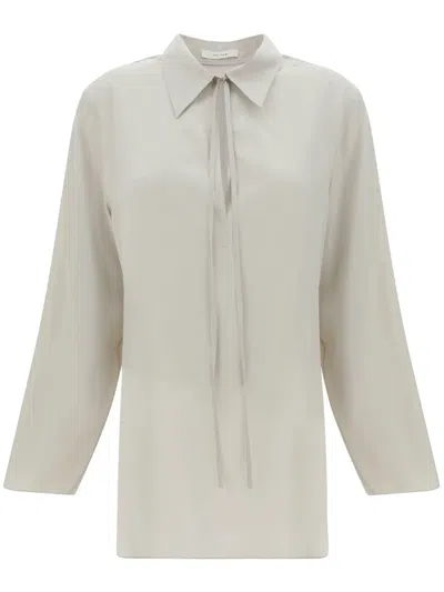 Parave Button Down Silk Blouse In Beigebrown