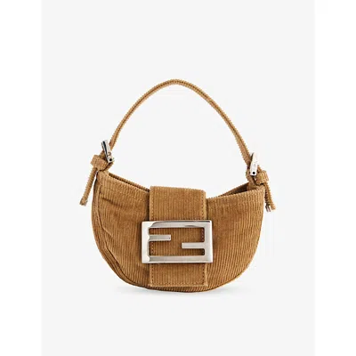 Womens Brown Pre-loved Fendi Corduroy Croissant Shoulder Bag