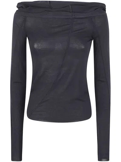 Stretch Nylon Jersey Long Sleeve Top In Black